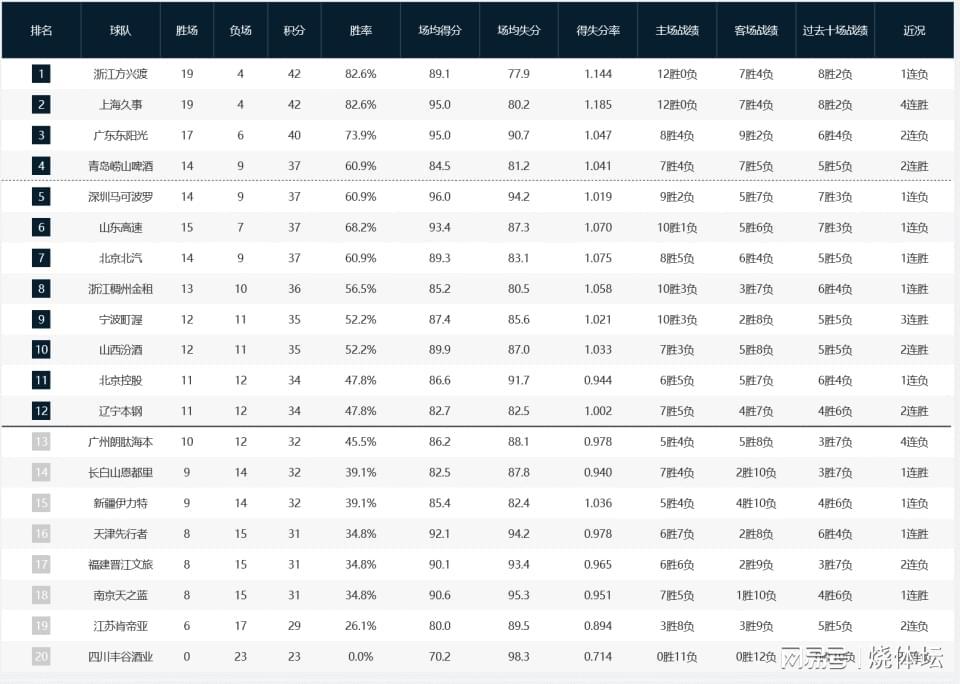 开云官网-CBA积分榜:上海队积分追平广厦,青岛回升第四+北京排名第七